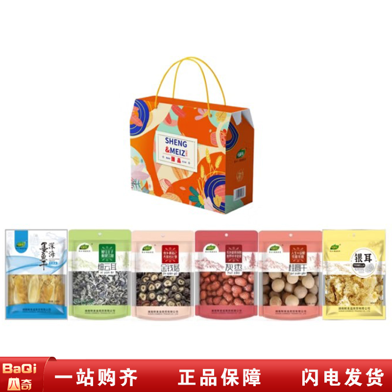 商品名称:升美滋臻品920克礼盒尺寸43*19*30cm(200克墨鱼干、100克细云耳、100克金钱菇、200克桂圆干、200克灰枣、120克银耳)