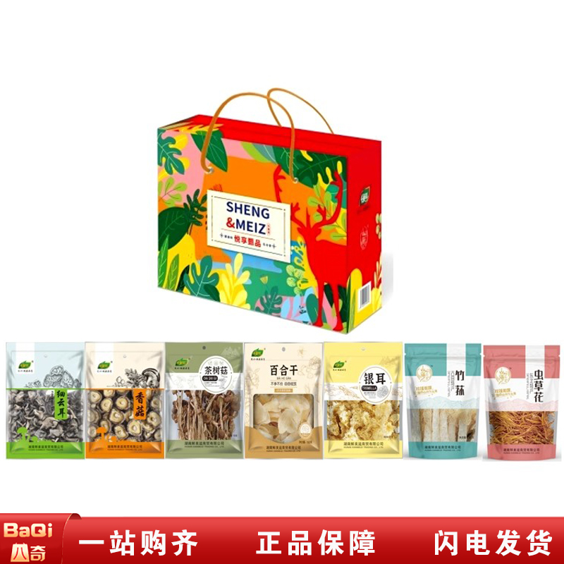 商品名称:升美滋悦享甄品864克礼盒尺寸37*16*27cm(150克细云耳、150克香菇、150克茶树菇、150克百合干、150克百合干、36克竹荪、108克虫草花)