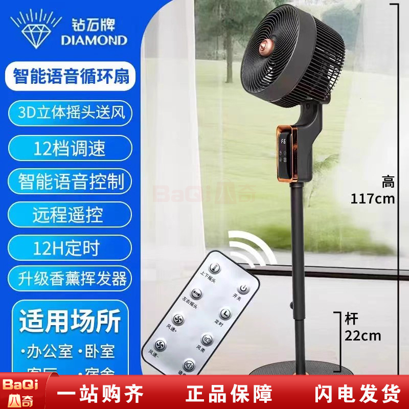 钻石牌XHZJ10-1语音遥控款 10寸1型空气循环扇家用静音卧室客厅大风力摇头语音遥控落地铜芯电风扇