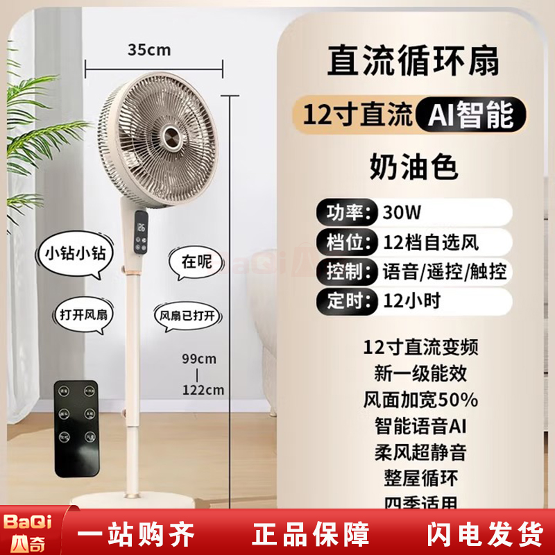 商品名称:钻石牌XHZL30K-1 12寸1型空气循环扇家用落地扇立式摇头节能轻音智能语音控制电风扇 12寸直流循环扇
