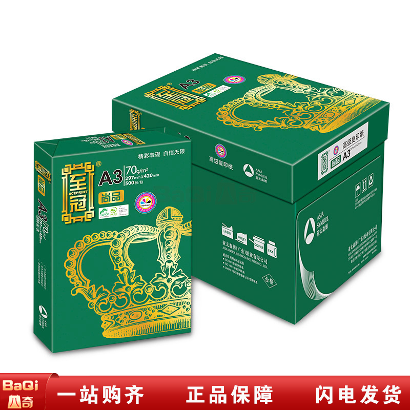 商品名称:至冠尚品 A3 70g 打印/复印纸 办公用品 500张/包 (4包/箱)