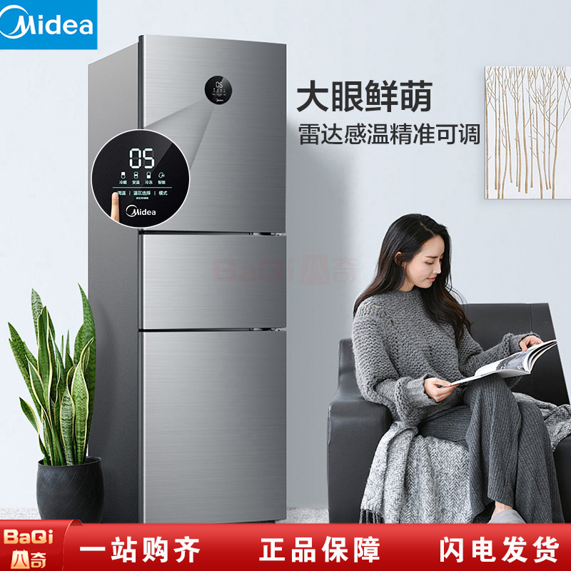 美的 BCD-260WTPZM(E) 家用冰箱 三开门一级变频风冷小型冰箱智能家电