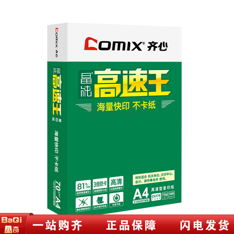 商品名称:齐心 C4774-5 打印/复印纸 A4 70g 晶纯高速王复印纸 白 500张/包(8包/箱)