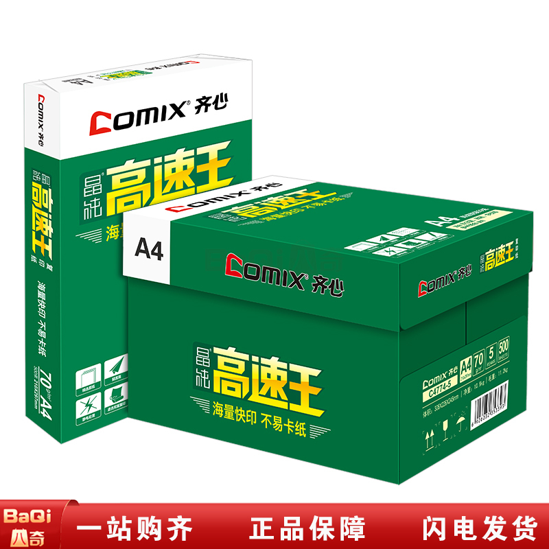 商品名称:齐心 C4774-5 打印/复印纸 A4 70g 晶纯高速王复印纸 白 500张/包(8包/箱)