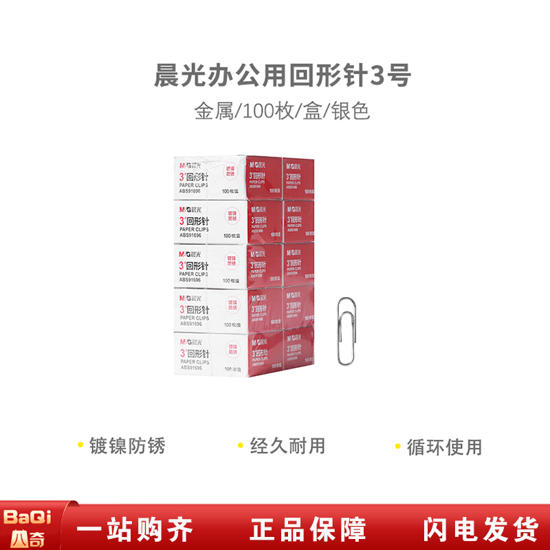 商品名称:晨光ABS91696 回形针办公室3号金属纸100枚盒装镀镍防锈