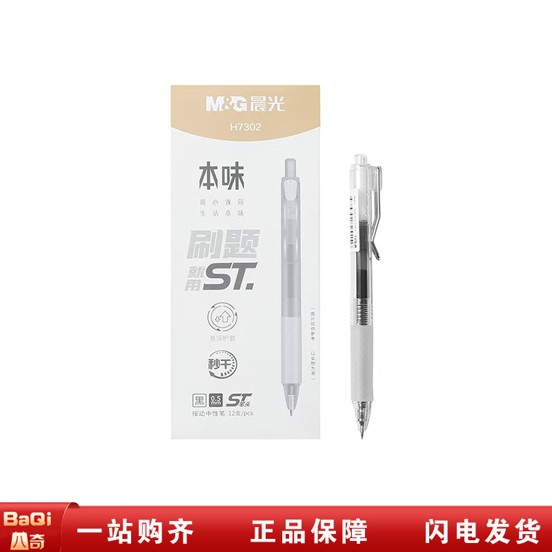 商品名称:晨光AGPH7302A 本味ST秒干按动中性笔黑色(12支/盒)