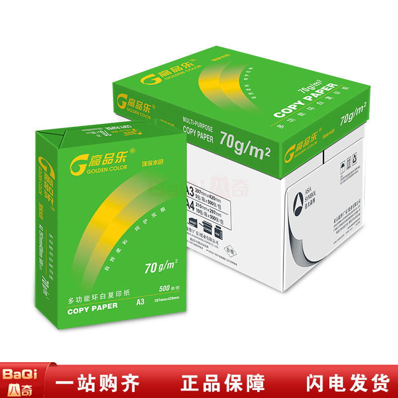 商品名称:高品乐 环白高品乐 A3 复印纸 70g 500页/包(4包/箱)