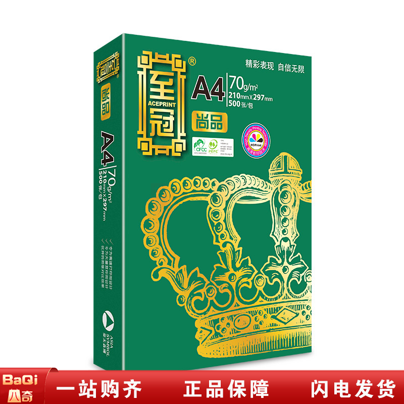 商品名称:至冠尚品A4 70g 复印纸 500张/包 8包/箱