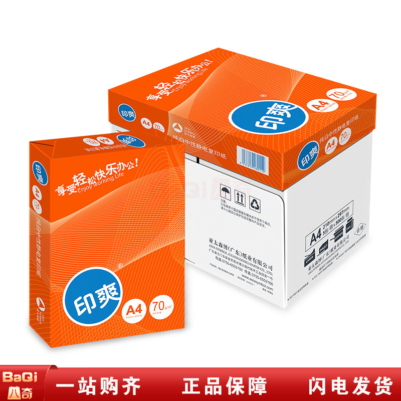 商品名称:印爽 A4 70g 复印纸500张/包 8包/箱