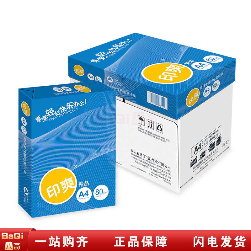 商品名称:印爽 精品 A4-80g打印/复印纸500张/包 8包/箱