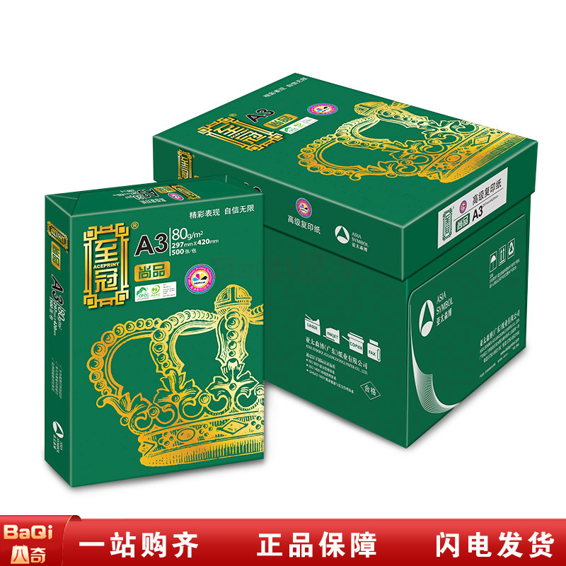 商品名称:至冠尚品 A3 80g 打印/复印纸 办公用品 500张/包 4包/箱
