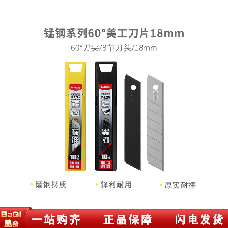 商品名称:晨光ASS913V4锰钢系列18mm60°白刃美工刀片(10片/盒)