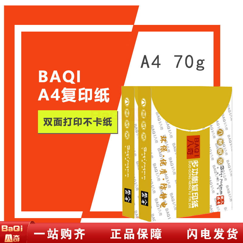 商品名称:八奇 黄八奇A4 70g复印纸纯木浆纸 多功能复印纸 双面不卡纸500张/包 8包/箱