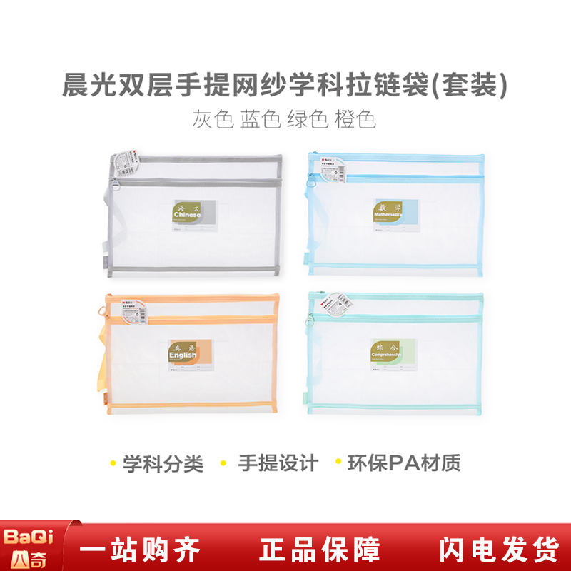 商品名称:晨光ADM929WMC 文件袋双层手提网纱学科袋拉链袋(双层英语)