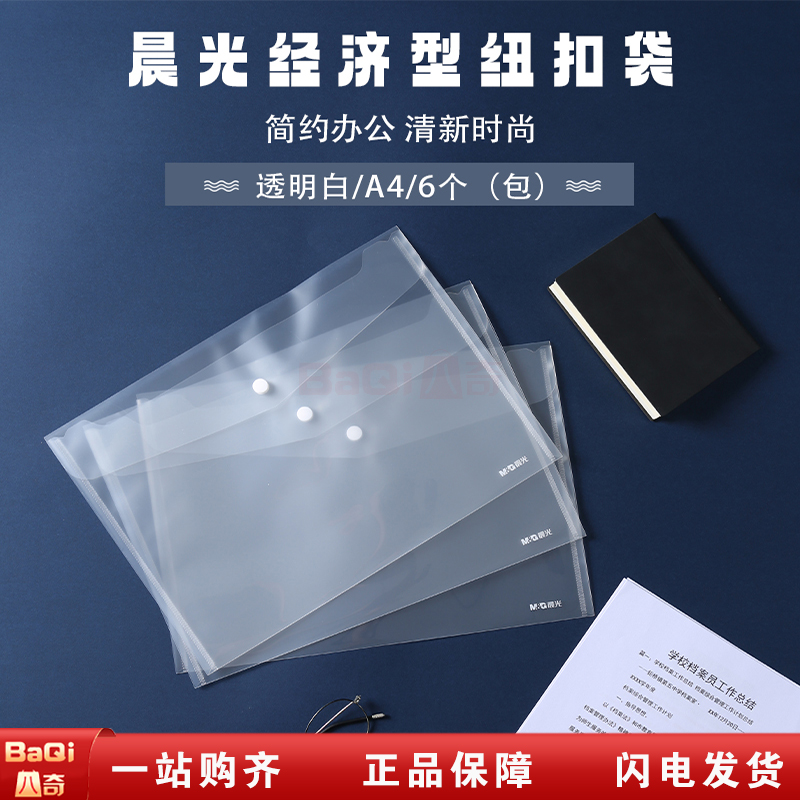 商品名称:晨光ADM945E8 普惠型A4透明文件袋纽扣袋(6个/包)