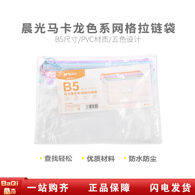 商品名称:晨光ADM929YE 马卡龙色系网格文件袋拉链袋B5