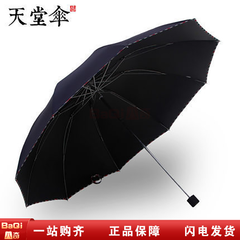 商品名称:天堂伞 3311E碰击布64cm*10k三折晴雨伞防雨纯色防紫外线颜色随机