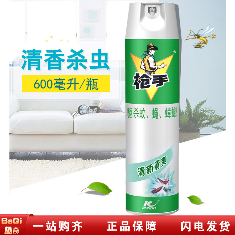 商品名称:枪手 600mL清香型 杀虫剂 杀虫喷雾 驱虫用品 可驱杀蚊蝇蟑螂 (24瓶/件)