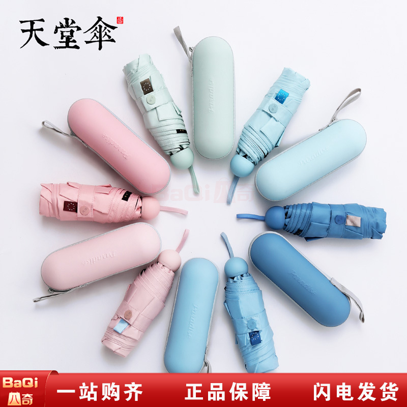 商品名称:天堂伞 53059E 五折折叠小巧胶囊收纳防晒遮阳迷你mini紫外线晴雨伞颜色随机