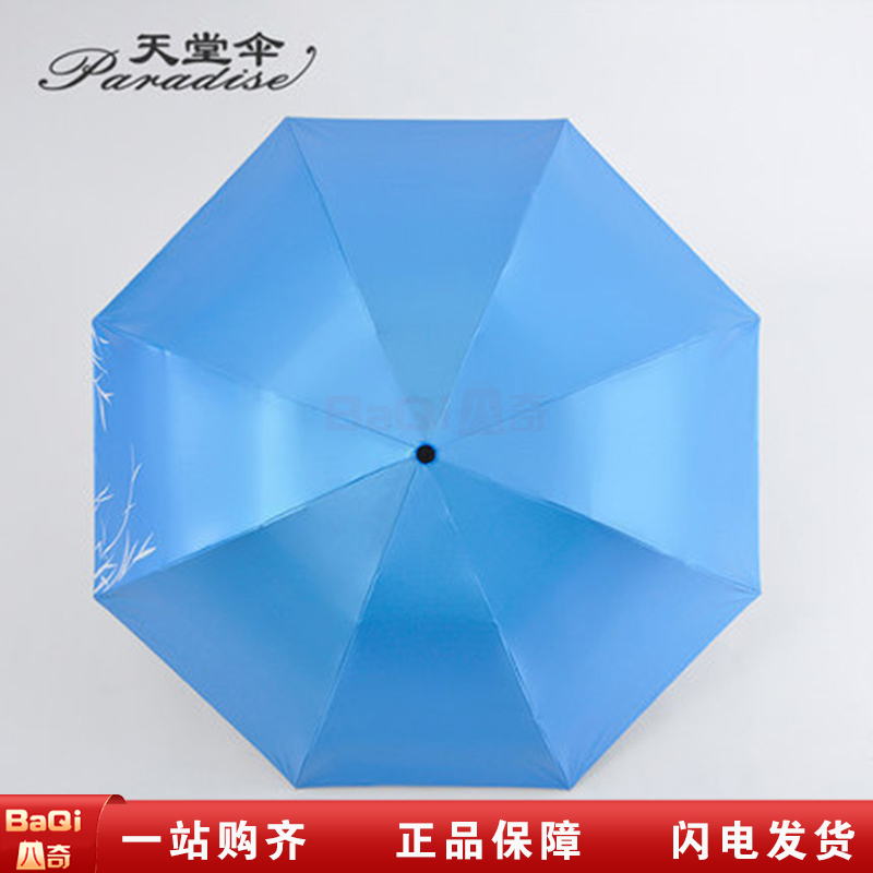 天堂伞 33332E竹烟波月全遮光丝光绒彩胶三折晴雨伞57cm*8k颜色随机