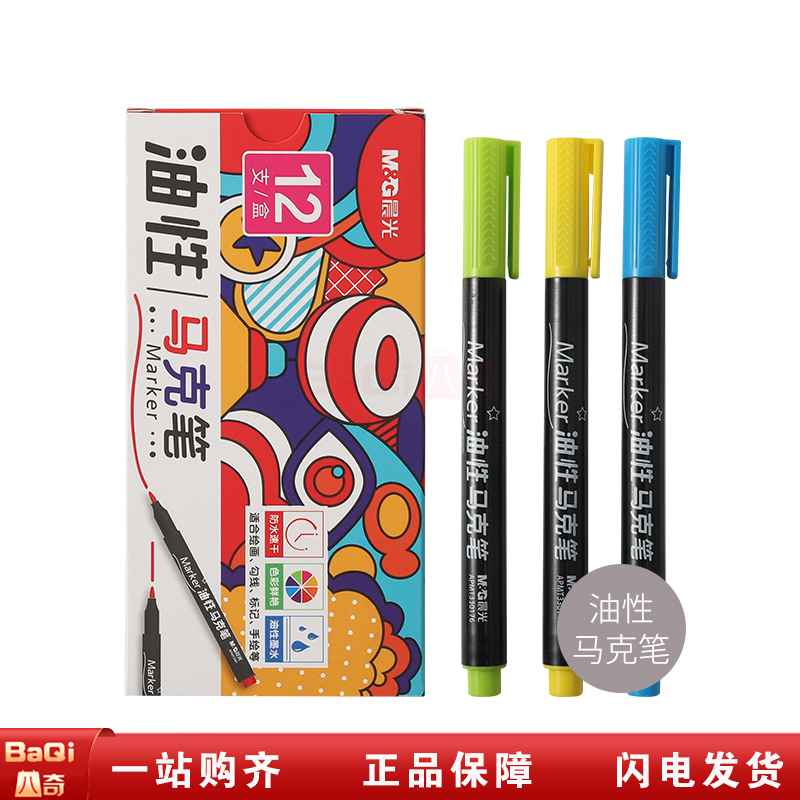 商品名称:晨光APMT3301B17 油性马克笔 深蓝色(12支/盒)