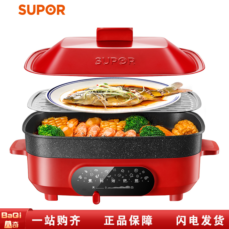 苏泊尔 JD3424D808 多用途锅电烧烤锅电火锅家用电蒸锅 煎烤机/锅 料理锅网红锅(34*24CM)