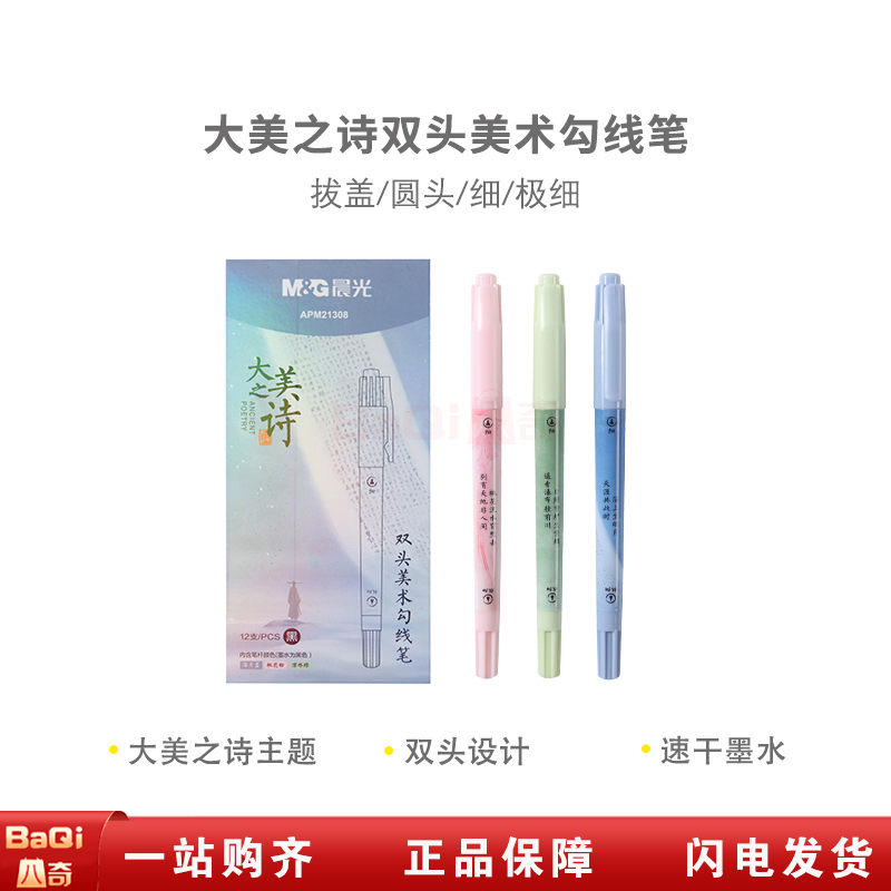 晨光APM21308 大美之诗双头美术勾线笔黑色(12支/盒)