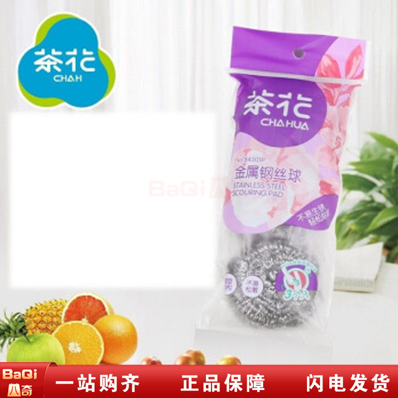 茶花 B4301P金属钢丝球厨用钢丝球清洁球锅刷钢丝球不锈钢金属钢丝球家务清洁球刷(3个装)