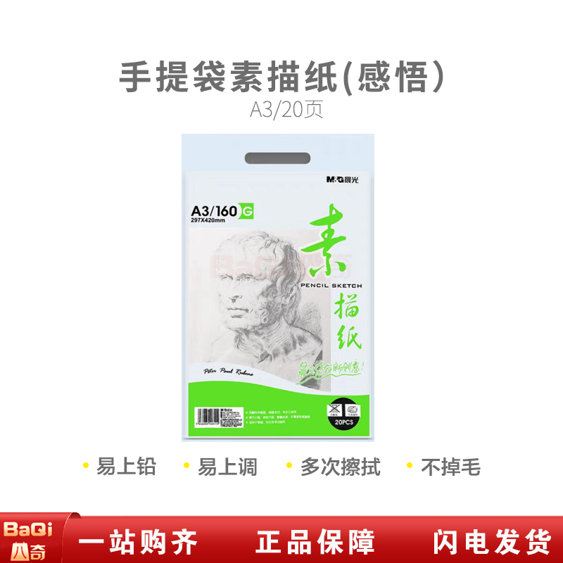 商品名称:晨光MA3262 A3素描纸加厚绘画白纸美术生写生画画纸绘画纸儿童学生手抄报手绘铅画纸 (20张/袋)