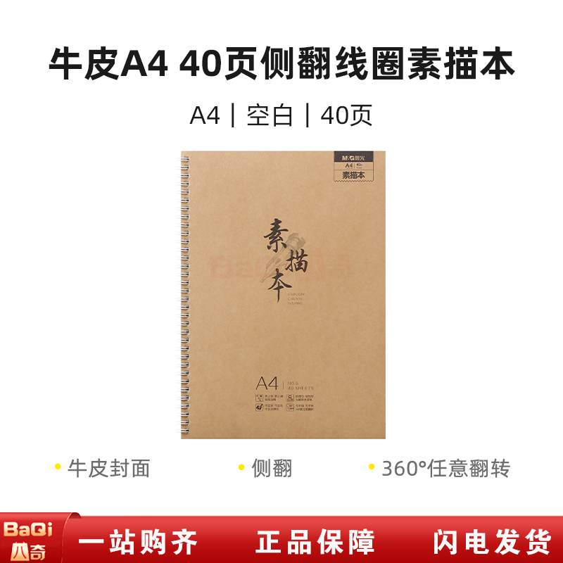 晨光SA4299BA 牛皮A4侧翻线圈素描本(40页/本)