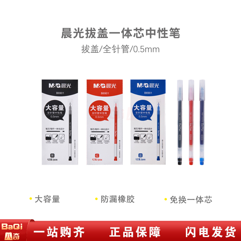 商品名称:晨光AGPB6901A 拔盖式一体芯中性笔黑色(12支/盒)