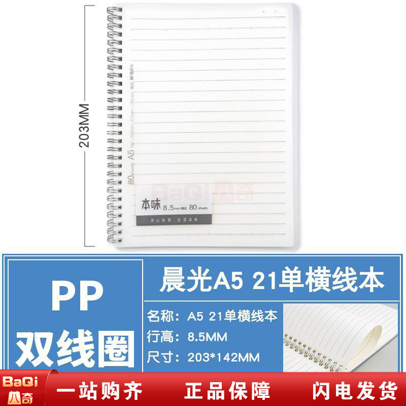 商品名称:晨光MPY7ET21 本味A5 双线圈80页横线笔记本记事本