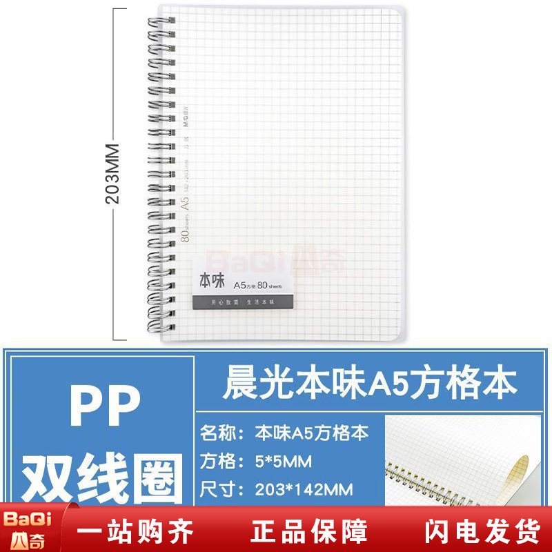 商品名称:晨光MPY7EU30 本味A5 双线圈80页方格笔记本记事本