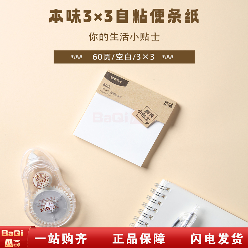 商品名称:晨光YS-407 3*3本味系列空白便签贴纸粘性学生用n次记事贴便利贴(60页/包)