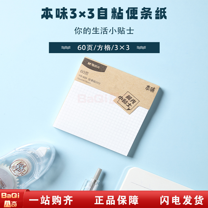 商品名称:晨光YS-409 3*3本味系列便利贴学生优事贴初中生网格方格贴纸(60页/本)
