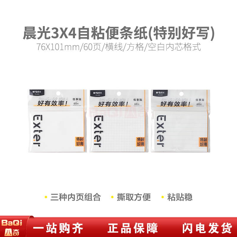 商品名称:晨光YS-609 3*4便利贴便签纸记事贴小清新优事贴办公用记事贴 方格/横线/空白(60页/本)