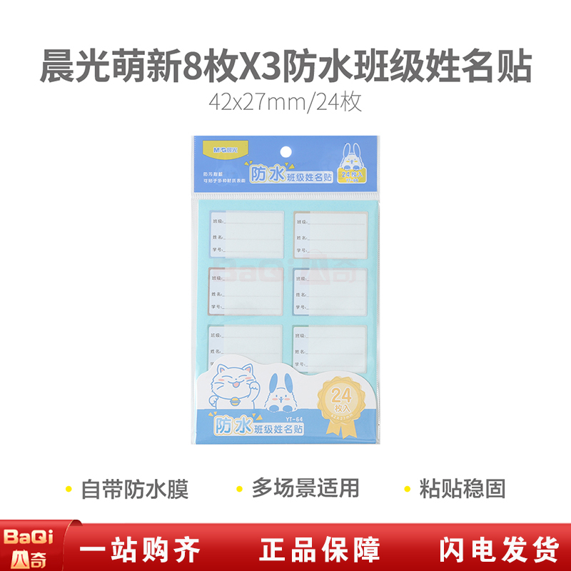 商品名称:晨光YT-64 萌新8枚×3防水班级姓名贴