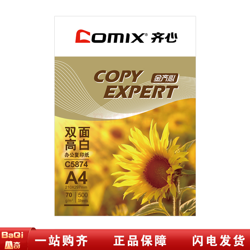 商品名称:齐心 C5874-5 A4 70g 金齐心高白复印纸 白 500张/包