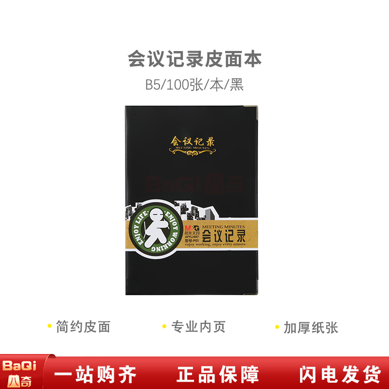 商品名称:晨光APYLJ487 B5商务黑色皮面工作本 会议笔记本 皮面笔记本子 加厚记事本(100页/本)