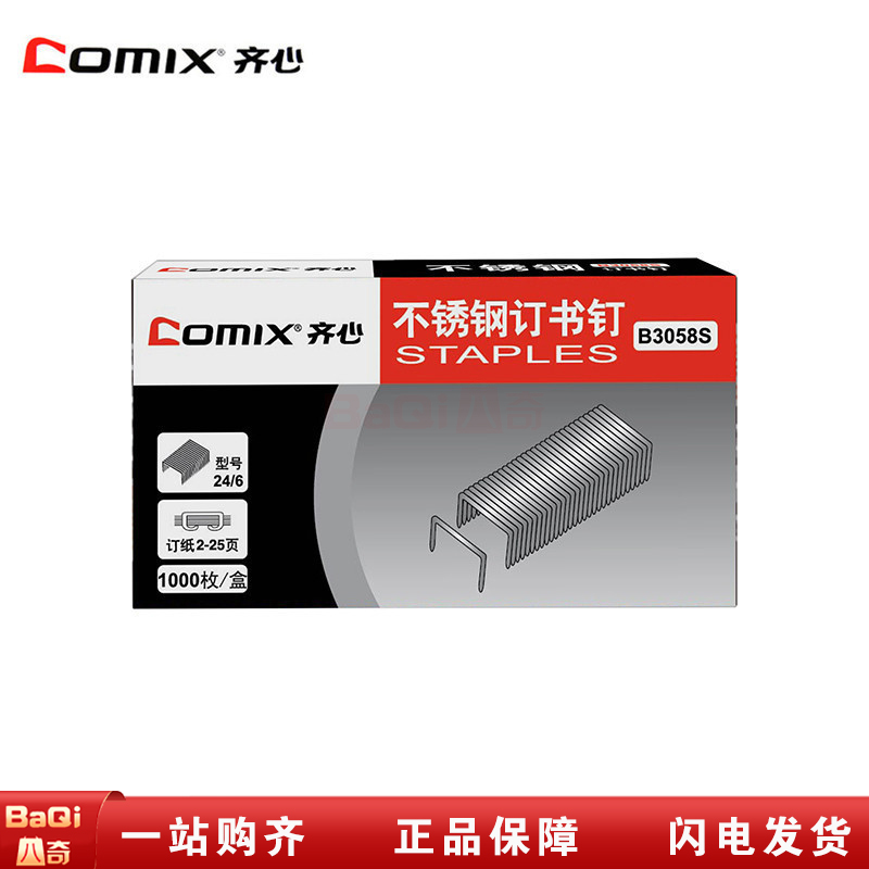 商品名称:齐心 B3058S 24/6 不锈钢订书钉 镍