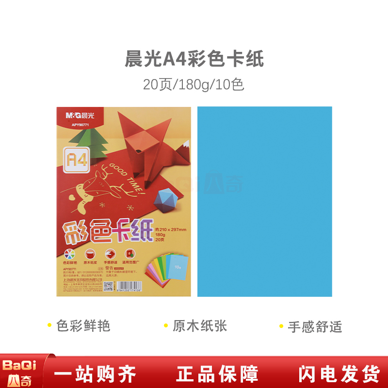 商品名称:晨光APY90771 A4彩色卡纸 学生手工课彩纸(20页/本)
