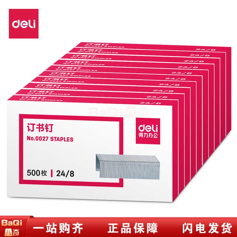 商品名称:得力0027订书钉加厚订书钉不锈钢订书钉订书机钉子通用办公文具用品可订50页