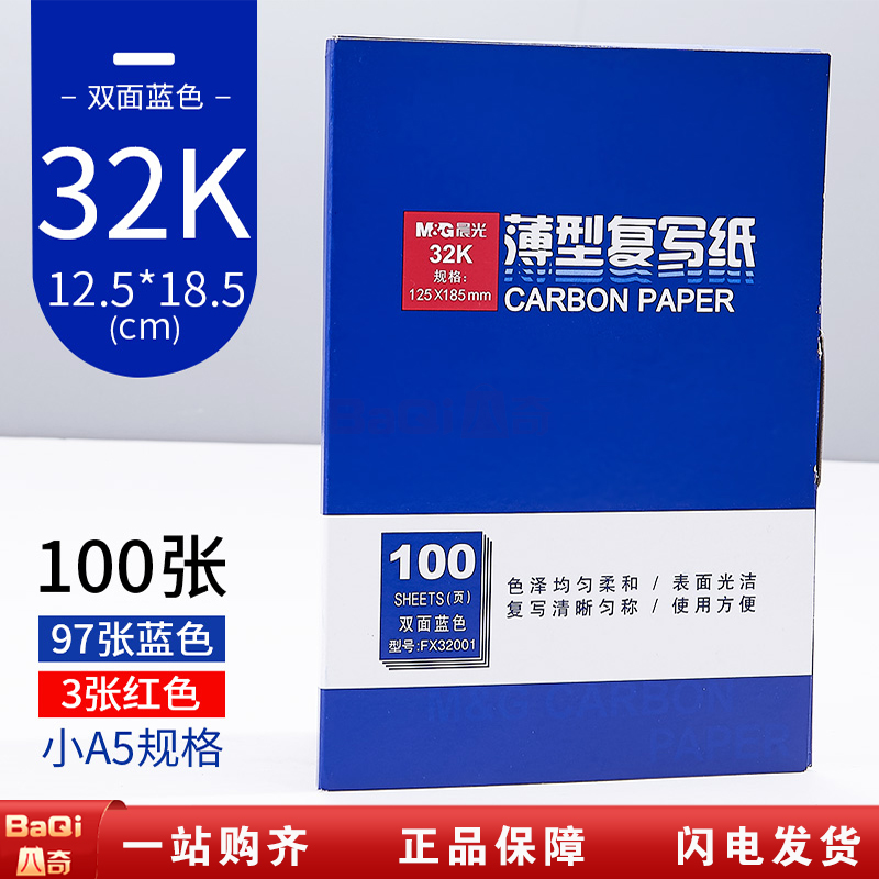 商品名称:晨光APYVC608 蓝色财务复写纸复印纸双面蓝色复写纸32K(125*185mm) 100页/包