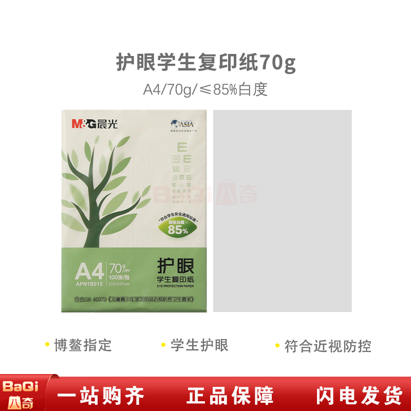 商品名称:晨光APN1B015 A4护眼学生复印纸打印纸70g(100张/包)