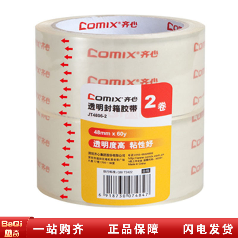 商品名称:齐心 JT4806-2 胶带/胶纸/胶条 透明封箱胶带 48mm*60Y 透明 2卷装
