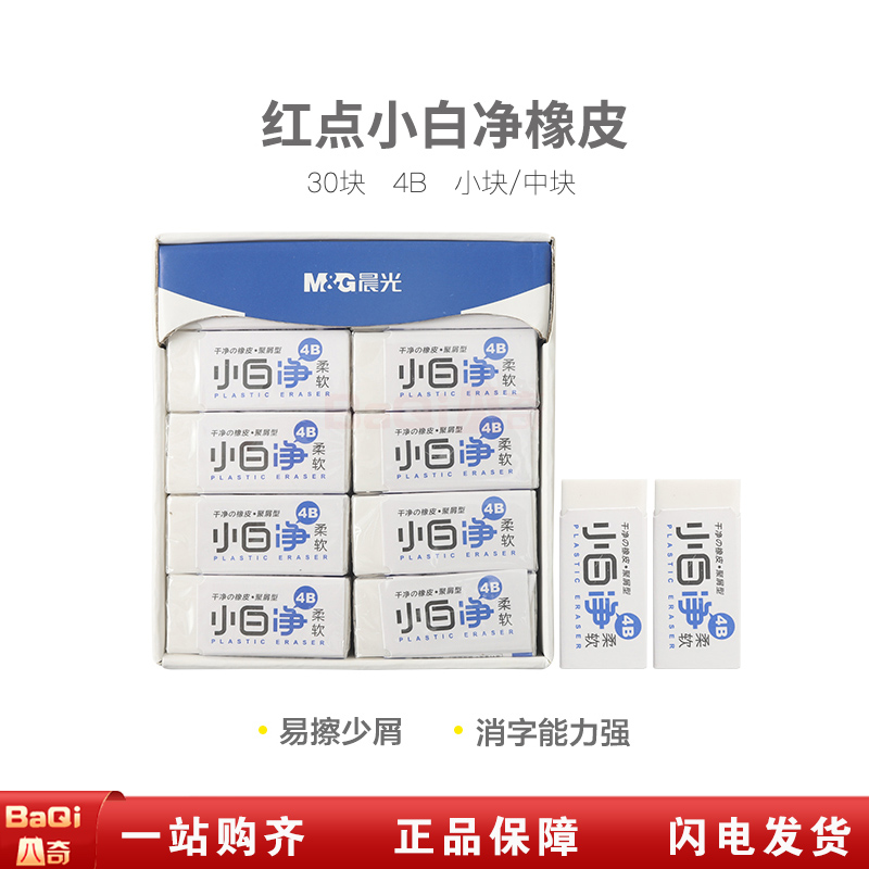 商品名称:晨光AXP963CQ 红点小白净小号橡皮 考试橡皮 涂卡笔橡皮擦 学生办公橡皮擦(30块/盒)
