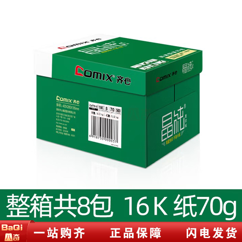 商品名称:齐心 C4776-8 晶纯复印纸 70克 16K 500张/包 8包/箱 白