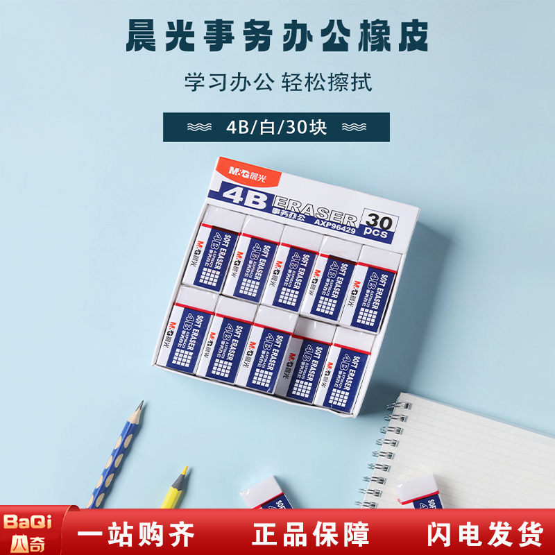 商品名称:晨光AXP96429 经典白橡皮 4B学生写字绘画办公橡皮擦(30块/盒)