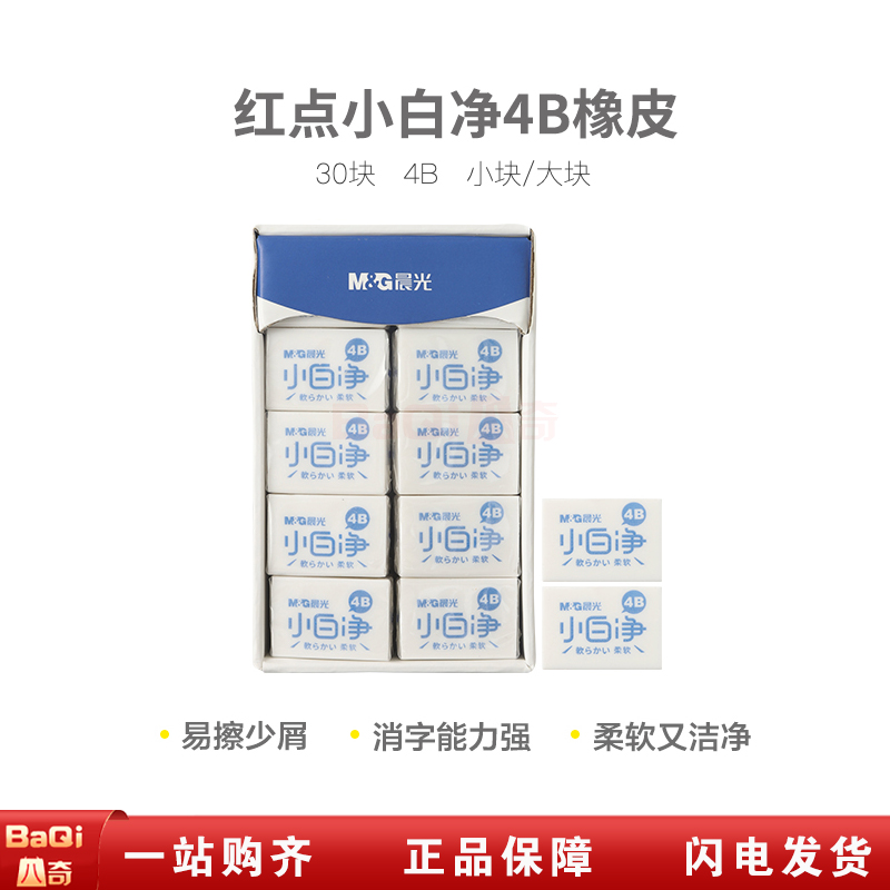 商品名称:晨光AXP963CS 红点小白净4B大号橡皮 学生考试作业修改绘图橡皮擦(30块/盒)