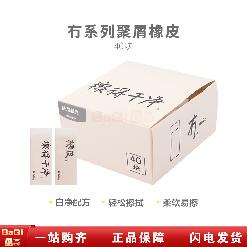 商品名称:晨光FXP963FM 冇系列 橡皮擦得干净小号聚屑简约不伤纸中小学生用小巧便携擦铅笔印橡皮擦 (40块/盒)